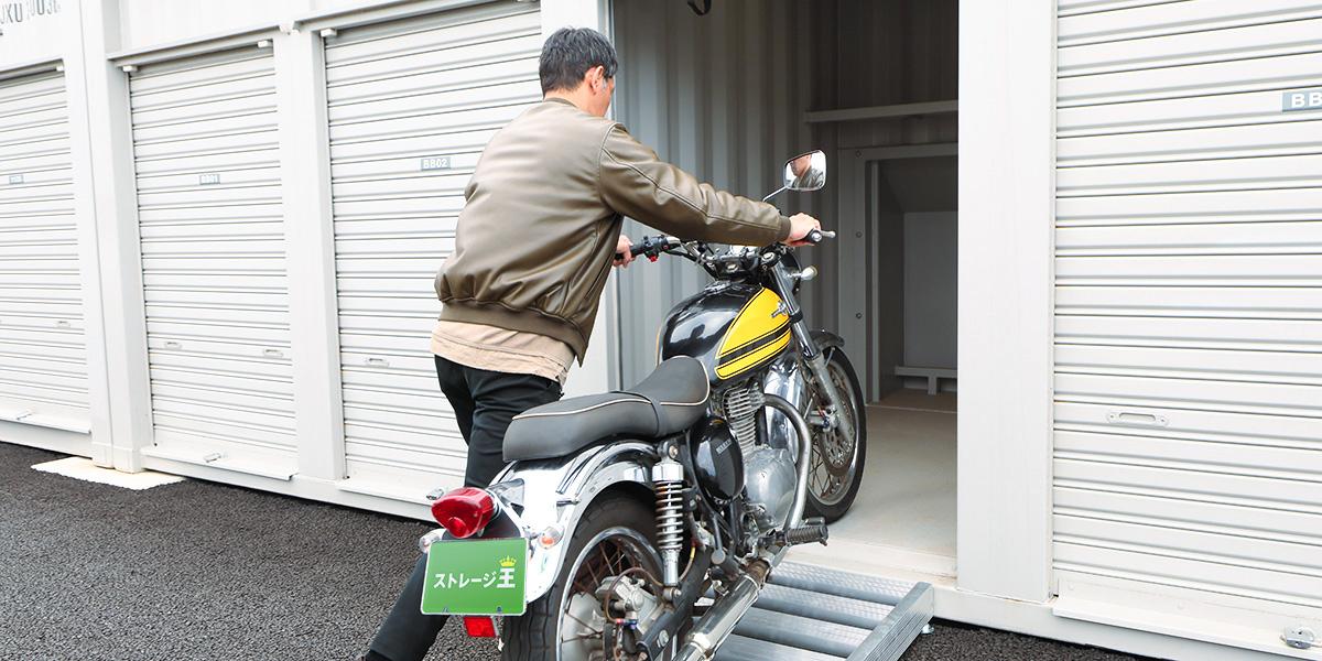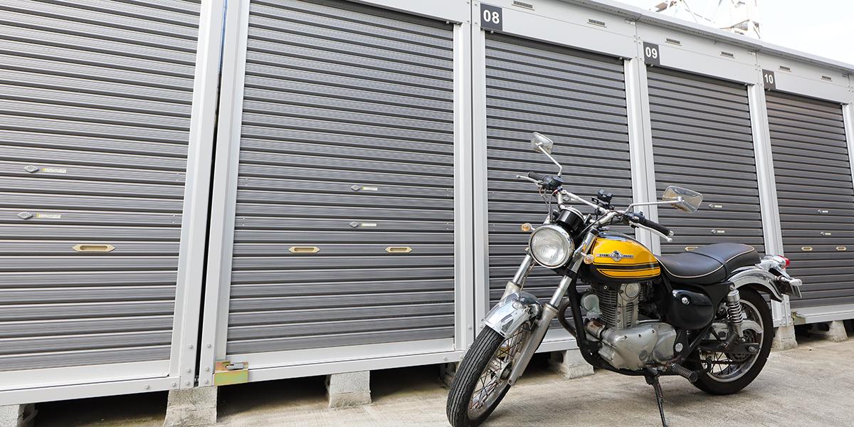 備え付けの棚やロッカーもしくは空きスペースに、ヘルメット・タイヤ・オイル・レインウエアなどの備品を保管することも可能です。
