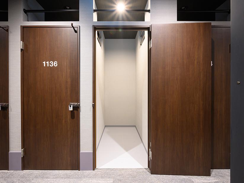 24時間出し入れ可能な屋内型トランクルーム。防犯カメラの監視や全部屋に庫内照明が設置されており、空調設備も完備。一時駐車スペースもご用意しておりますのでお車でお越しいただけます。