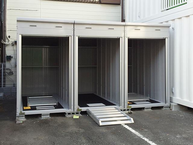 あなたの大切なバイクを風雨から守る待望のバイクボックスオープン。 スロープは軽く着脱式の為、かんたんにバイクを収納することが出来ます。